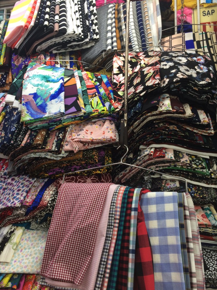 EN: The first thing you should do, is briskly walk up and down all the aisles and see if there is anything that catches your eye. Some stalls specialize in children’s fabrics, others in linen or cottons etc. Once you’ve decided on a stall, ask one of the ladies in charge to show you the fabric, make sure you touch it, then ask for a price and then ask if she’ll give you a discount, if you buy more than one fabric at her stall.