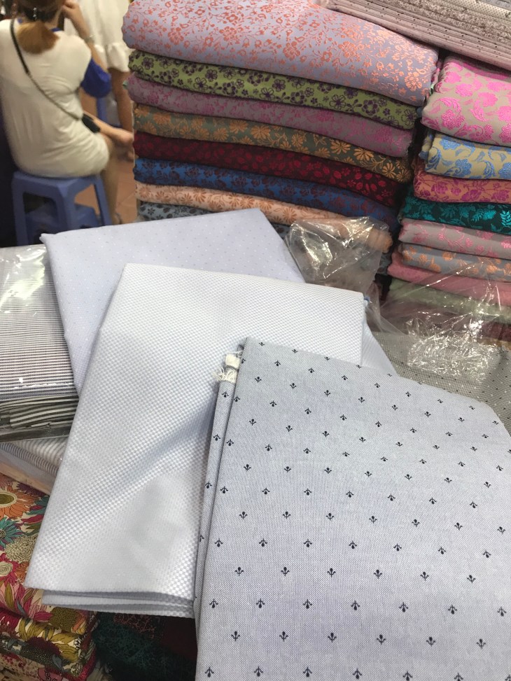 DE: ABER: Ich fand die Stoffpreise hier ziemlich utopisch, teilweise wurde 30 US Dollar für 1 Meter Spitze verlangt. Ich habe in Ben Than Market daher nur 3 x 2 Meter Hemdenstoffen für 1 Millionen Dong (LOL!!) ca. 37€ für die bessere Hälfte gekauft…was ich dann ein paar Tage später bereut habe… da ich dann darauf bestanden habe zum Than Dinh Market zu gehen, und falls ihr euch wundert wo der heilig Gral der Stoffe ist, dann ist er vermutlich wirklich in Than Dinh Market!