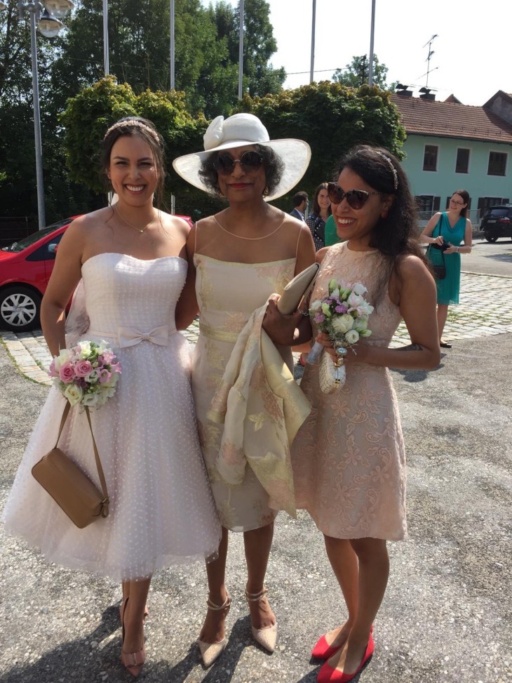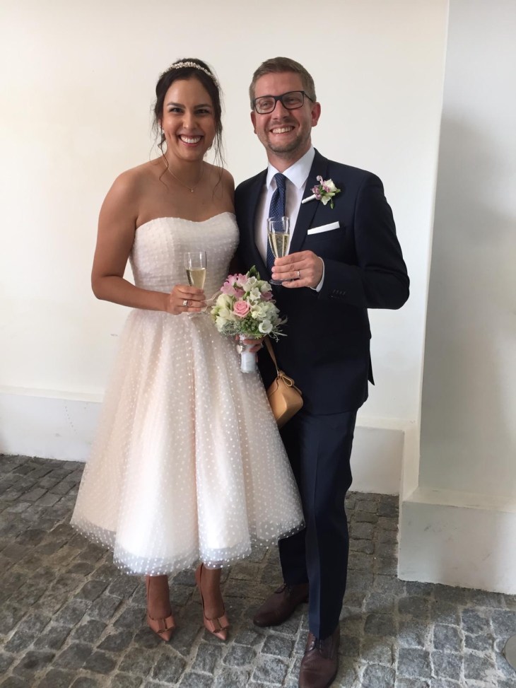 I got married in August! My now husband and I have been in a relationship for 15 years (!!!), 8 of which were long distance between Munich and Stuttgart and 2 of which were long distance between Munich and Birmingham. It doesn’t come as much as a surprise, that we finally tied the knot. We had a civil ceremony in our hometown and held the reception at the Tegernsee surrounded by friends and family. The weather was amazing and so was the food and the excellent company. Before you ask, I bought my dress from House of Mooshki – the best decision that I could have made. As we had only gotten engaged in October, I did not have the time to organize a wedding, hold down a fulltime job and design and sew a dress under the time constraints.