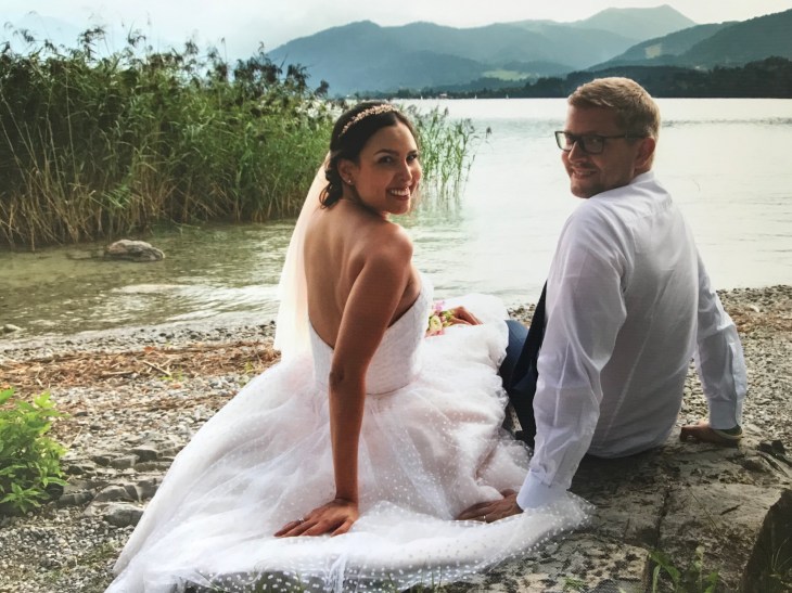 Ich habe im August geheiratet! Mein Mann und ich führen seit 15 Jahren eine Beziehung, 8 Jahre davon eine Wochenendbeziehung zwischen München und Stuttgart und 2 Jahre davon eine Wochenendbeziehung zwischen Birmingham und München, es war also nicht wirklich überraschend, dass wir uns dann ENDLICH getraut haben. Wir haben bei uns im Ort standesamtlich geheiratet und dann am Tegernsee gefeiert- beste Entscheidung überhaupt, das Wetter war traumhaft und das Essen im Hotel war nicht zu übertreffen! Mein Kleid ist übrigens von House of Mooshki, ich habe die richtige Entscheidung gemacht und mein Kleid gekauft- es wäre sich überhaupt nicht zeitlich ausgegangen. Wir hatten uns im Herbst verlobt und ich hätte nie und nimmer so ein perfekt passendes Kleid in diesem Zeitraum nähen können.
