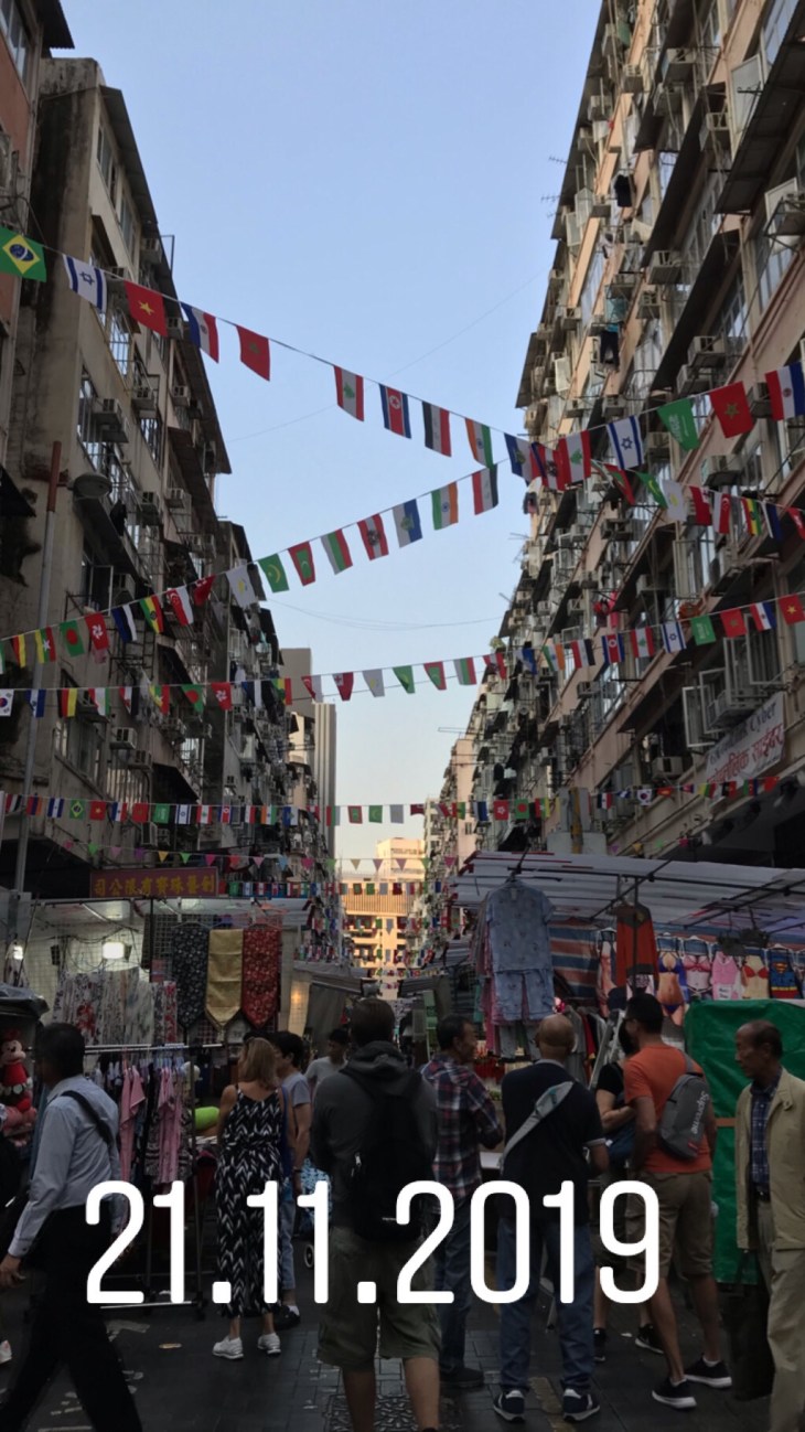 DE: Mitte November haben wir dann unseren restlichen Urlaub abgebaut und sind 11 Tage nach Hong Kong geflogen. Wir sind zum Ende der Aufstände angekommen und kurz nach den Neuwahlen wieder zurück geflogen. Die Stadt war unheimlich spannend, auch hier sind wir jeden Tag um die 15km zu Fuß gegangen und haben uns alle Sehenswürdigkeiten angesehen. Einen Tag haben wir auf Lantau Island verbraucht, sind auf dem Dragon’s Back wandern gegangen und haben einen Tag in Macau verbracht. Es gab so viele Märkte auf denen wir gestöbert haben und Souvenirs für unsere Wohnung gekauft haben und es ganz eine ganze Straße gefüllt mit Stoffen! (Ich denke, ich werde auch hier mal einen kleinen Blogpost dazu schreiben!) Ich habe Jeansstoff von Levi’s gekauft (!!!!) Leinen, Baumwolle und Seide und UNZÄHLIGE Knöpfe! Mein Koffer war bis um Anschlag vollgestopft und ich habe mir versprochen, dass ich wieder zurückkomme!