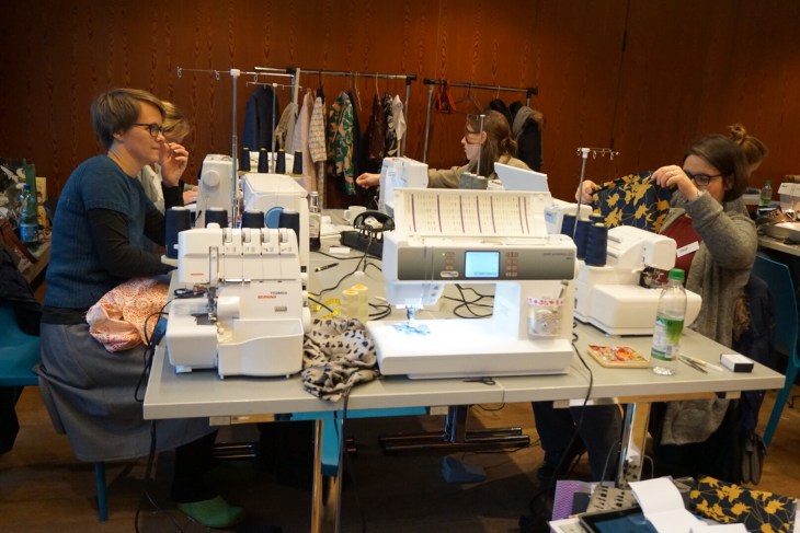 DE: Es folgte ein heißer Sommer, voller Hochzeiten, lauen Abenden mit Freunden und Kurtrips nach Italien und Schweden und dem Sewing Weekender im August. Ich bin einen Tag vorher zurück nach Birmingham geflogen und habe bei Barry’s und dem Ragmarket mich mit sehr viel Stoff eingedeckt….alles wieder in meinem Koffer unter zubringen gestaltetet sich dann als schwierig und ich habe mir dann 4 Meter Viskose als Halstuch umgehängt😂😂😂😂😂 Beim Sewing Weekender in Cambridge, konnte ich die alte Birmingham Truppe wieder sehen und natürlich auch viele neue Gesichter kennen lernen.
