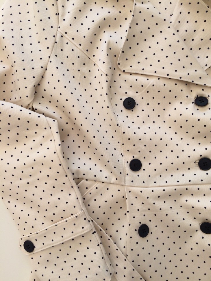 DE: Für das Innenleben habe ich Schrägband von Joann’s verwendet. In Amerika verkaufen sie deutlich breiteres Schrägband, was wohl von Quiltern besonders beliebt ist und das hat mir die Arbeit deutlich erleichtert. Mir gefällt, wie gut der Trench von innen aussieht. Die Knöpfe stammen von Stoff und Stil, die habe ich glaube ich im Januar bestellt… ich kann mich leider nicht mehr erinnern. Die Jacke habe ich übrigens im Januar beim