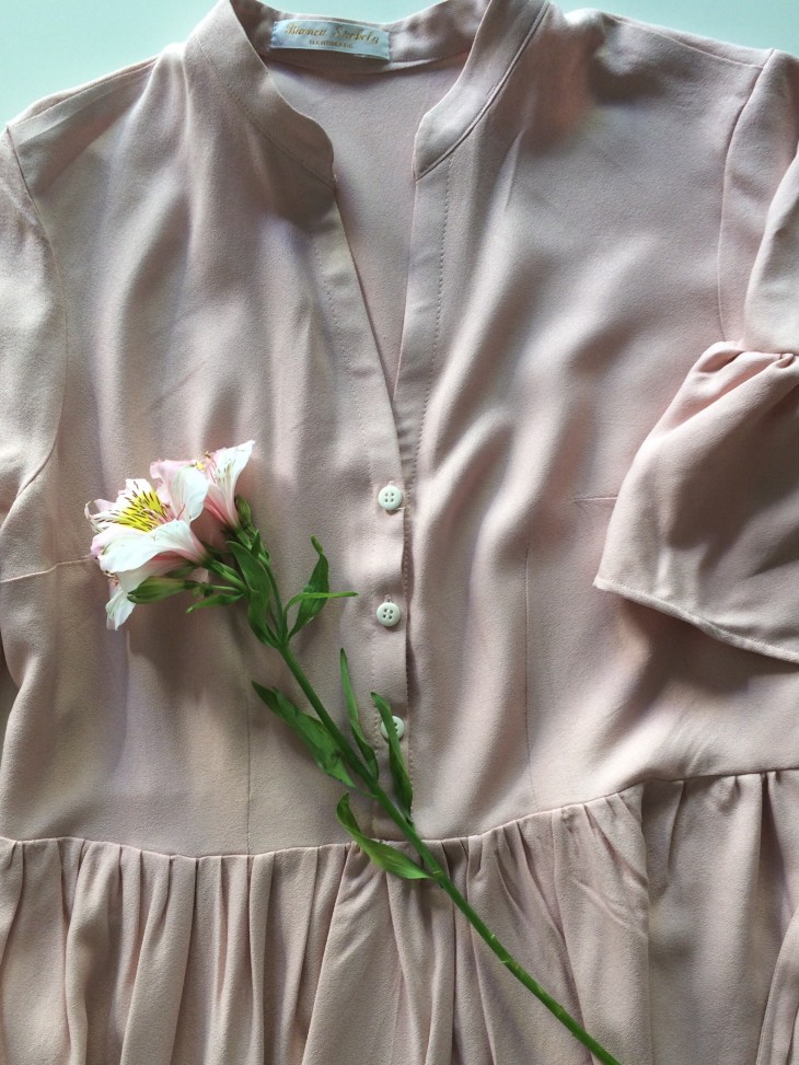 EN: The fabric is quite sheer, which is why I chose to underline it with some super soft, white lawn from Like Sew Amazing. I didn’t underline the sleeve and skirt flounce, because I ran out of fabric and also really didn’t see the point to be very honest. The buttons are from my stash, I think I won them in an Ebay auction a few years ago. I finished the seams of the dress with my very temperamental serger… she’s currently so temperamental that I had to rethread the machine after every seam that I finished. GRRRRRRRRRRRRRRRRRRR