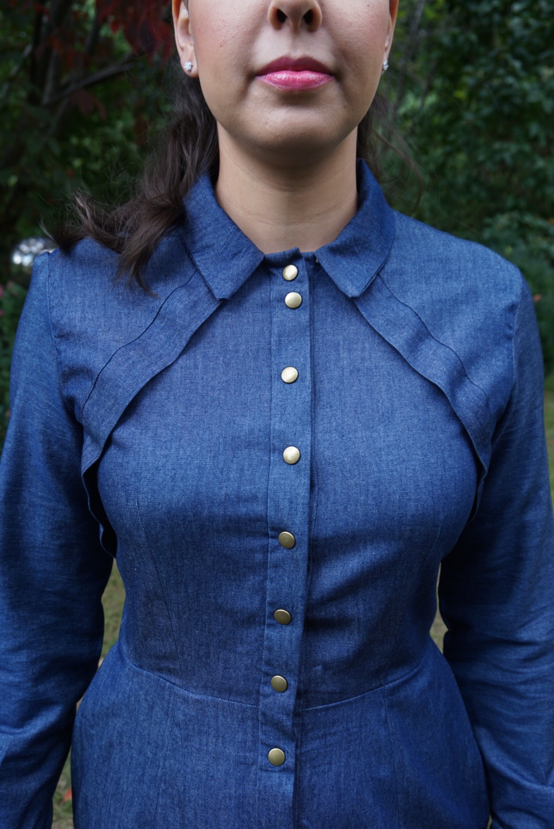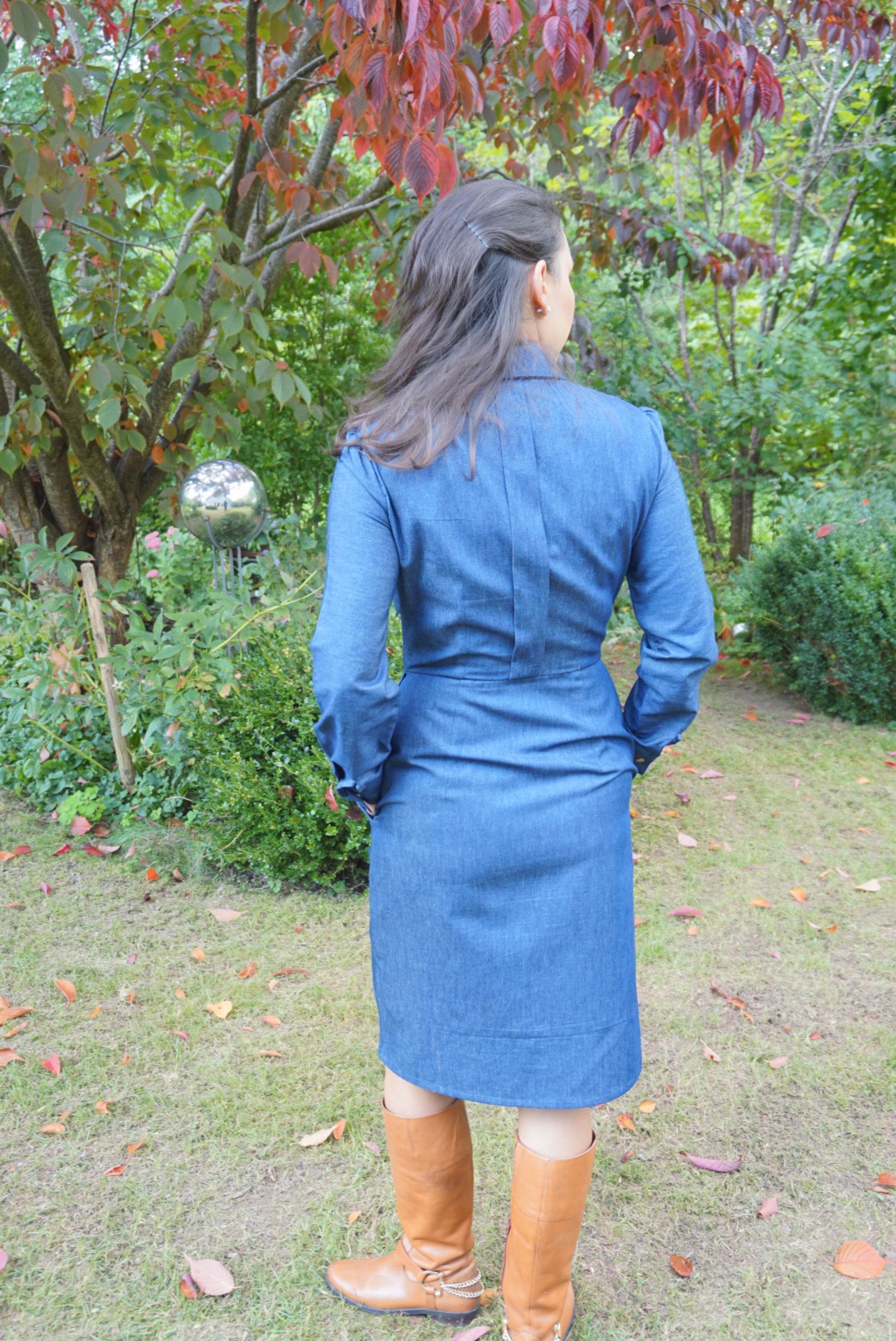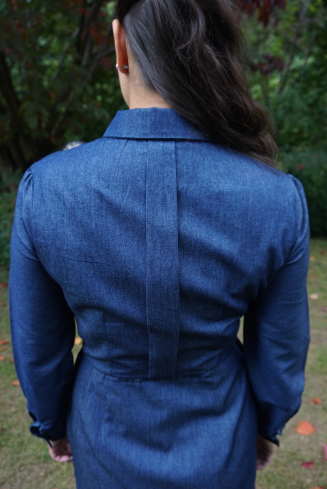 DE: Die einzige Anpassung die ich an diesem Kleid gemacht habe, ist das Halsband nach innen zu klappen und es von außen knappkantig fest zu steppen. Der Stoff ist, wie oben erwähnt, sehr stabil, und stand an den Seiten etwas hervor. Ich habe versucht das Problem mit dem Dampf meines Bügeleisens in den Griff zu bekommen, leider ohne wünschenswertes Ergebnis. Ich finde, meine Lösung eigentlich recht gut. Ich denke, wenn ich das Kleid noch einmal nähe, werde ich einen Beleg dafür konstruieren. Weitere Details findet ihr übrigens hier, jedoch nur auf Englisch. Ich wünsche euch ein sehr erholsames Wochenende.
