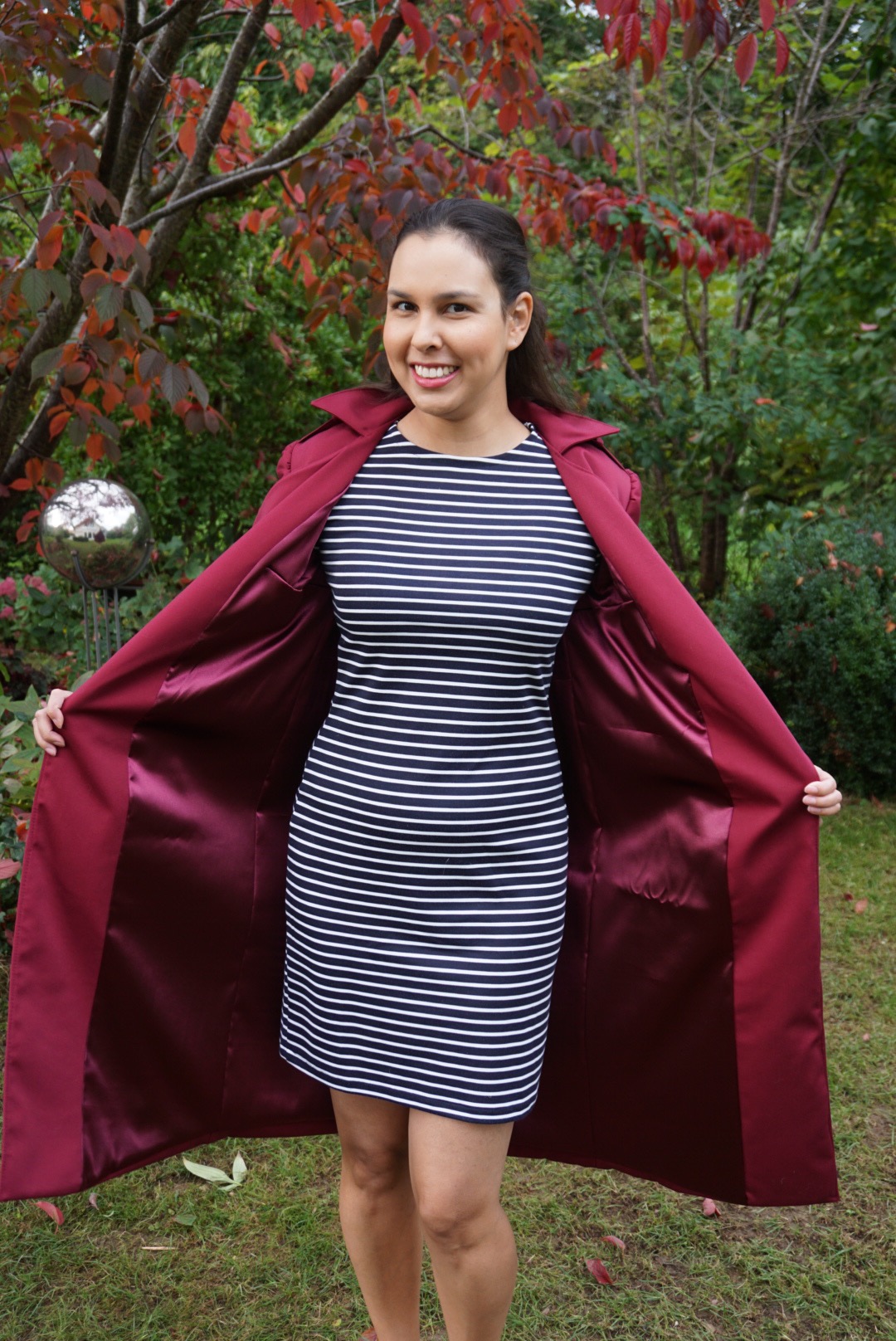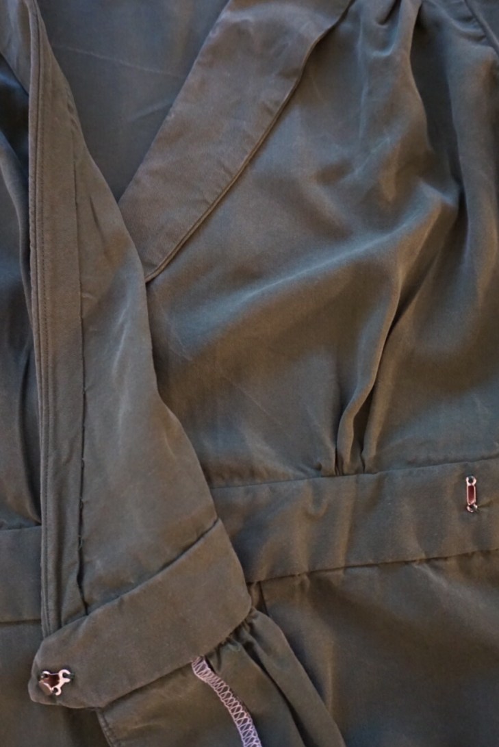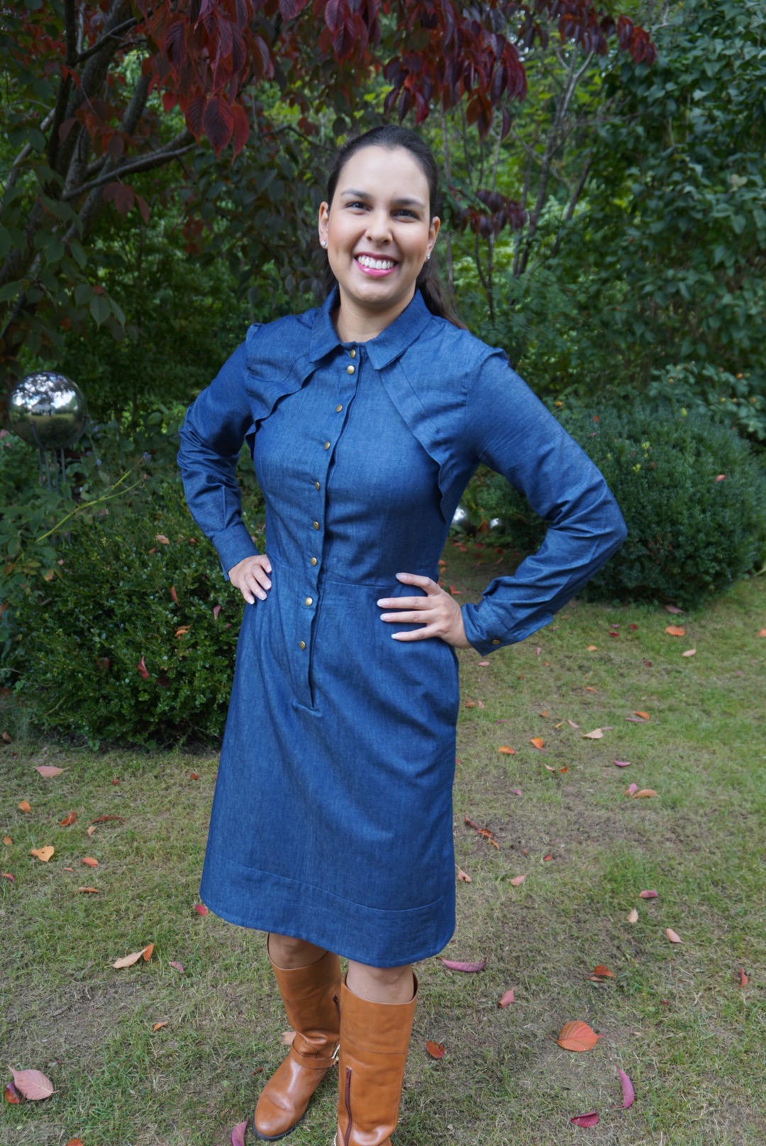 DE: Ich habe die Größe 10 gewählt und das Kleid um 2 Inch verlängert, auf den Modellbildern kam mir das Kleid etwas kurz vor und ich wollte es gerne in die Arbeit anziehen. An der Passform habe ich sonst nichts ändern müssen. Die ¾ Ärmel gefallen mir auch sehr gut, und machen das Kleid schon sehr wintertauglich. Ich habe einen Krepp-Stoff von Stoff und Stil verwendet, den ich letzten Dezember, als meine Freundin Victoria mich besucht hat, gekauft habe. Ich glaube, das nächste Mal werde ich dafür einen etwas festeren Krepp verwenden oder vielleicht eine festere Baumwolle.