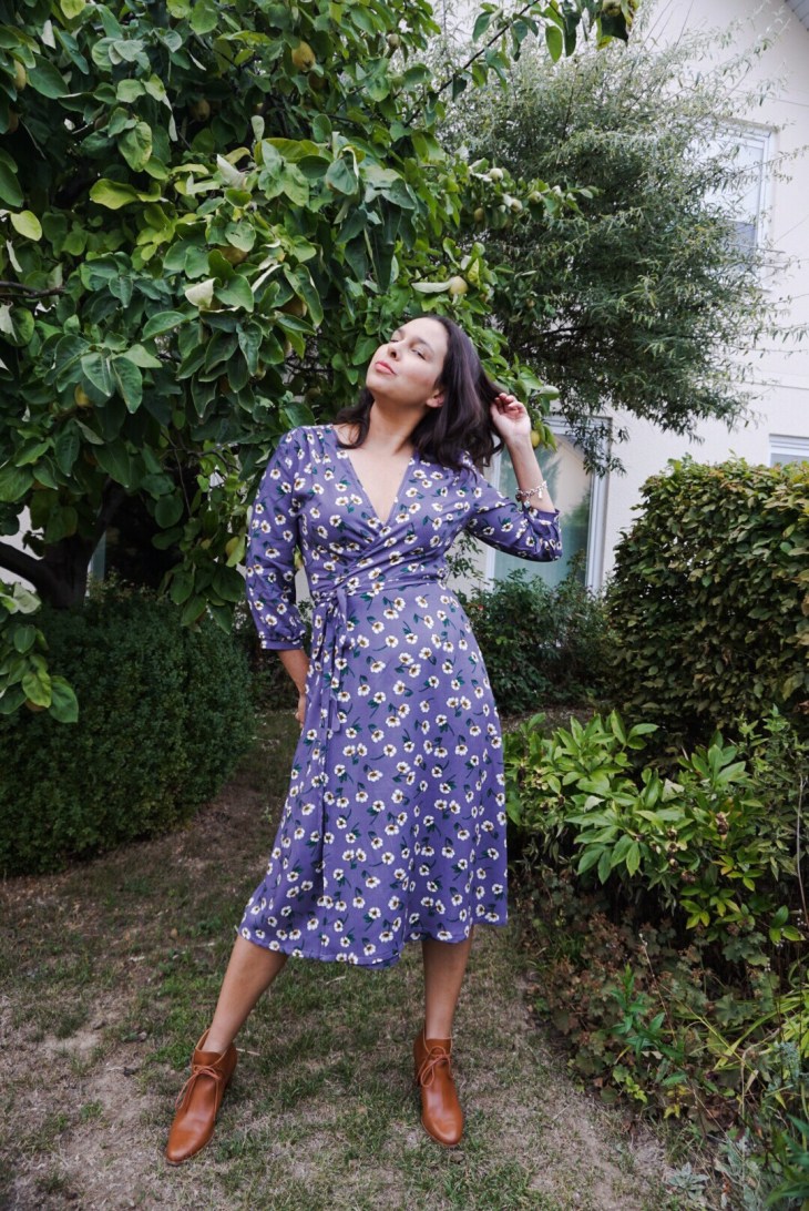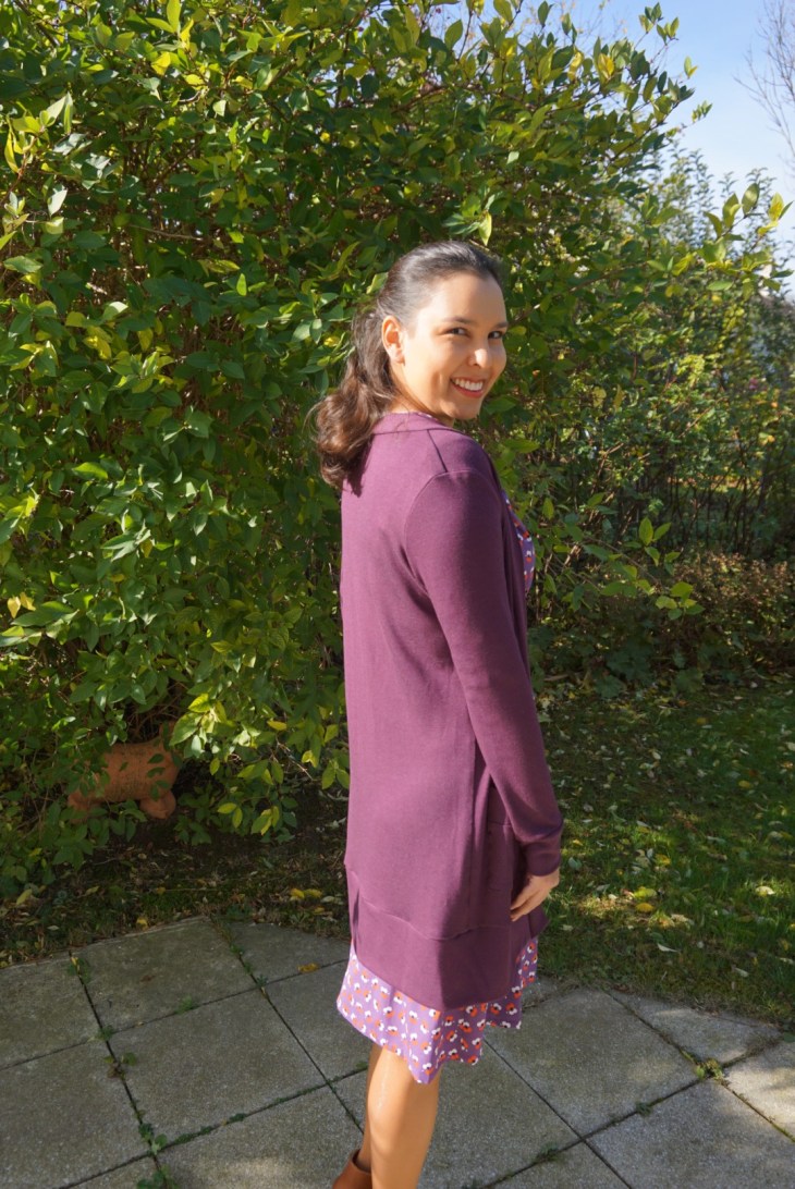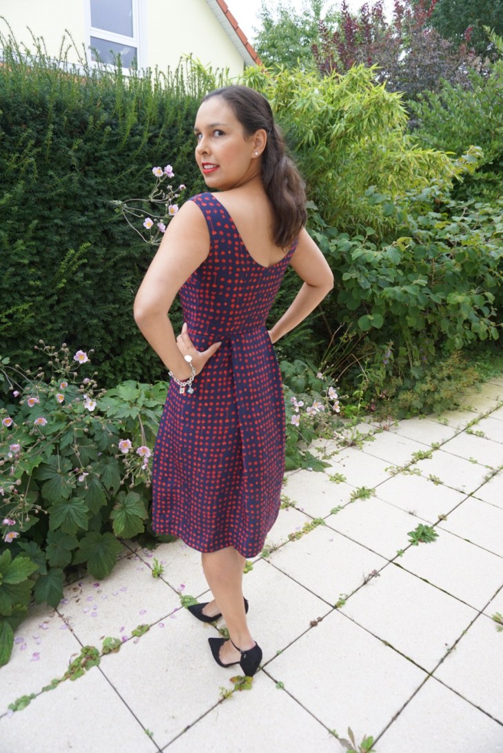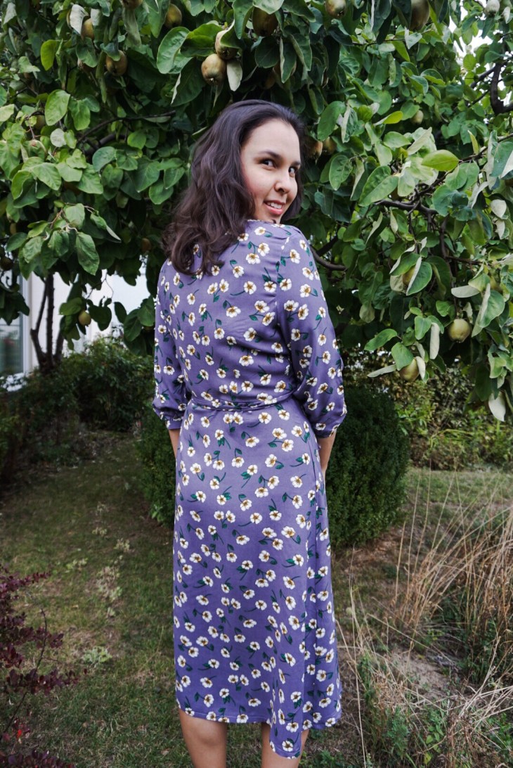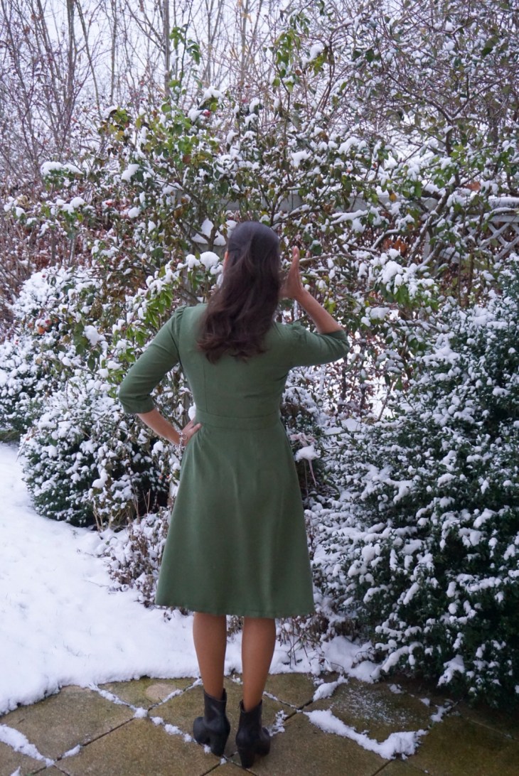 EN: I sewed up a size 10 again, I do think I might have to size down if I ever make this pattern again, as it does look like there’s a lot of fabric on the front left side…or maybe the dress just shifted, because I moving so much …because I was sooo cold. By the way, the Mister stood in the doorway of the kitchen and took the photos from there, without setting a foot into the backyard… because he thought it was too cold, too… hahahahah